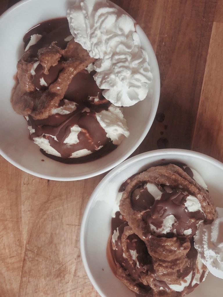 So today, I’m sharing this no-recipe recipe for an dessert that’s not super photogenic, but is absolutely delicious. It’s inspired by Stewart’s Peanut Butter Pandemonium ice cream, which is almost always in our freezer upstate — except for the one time it wasn’t.