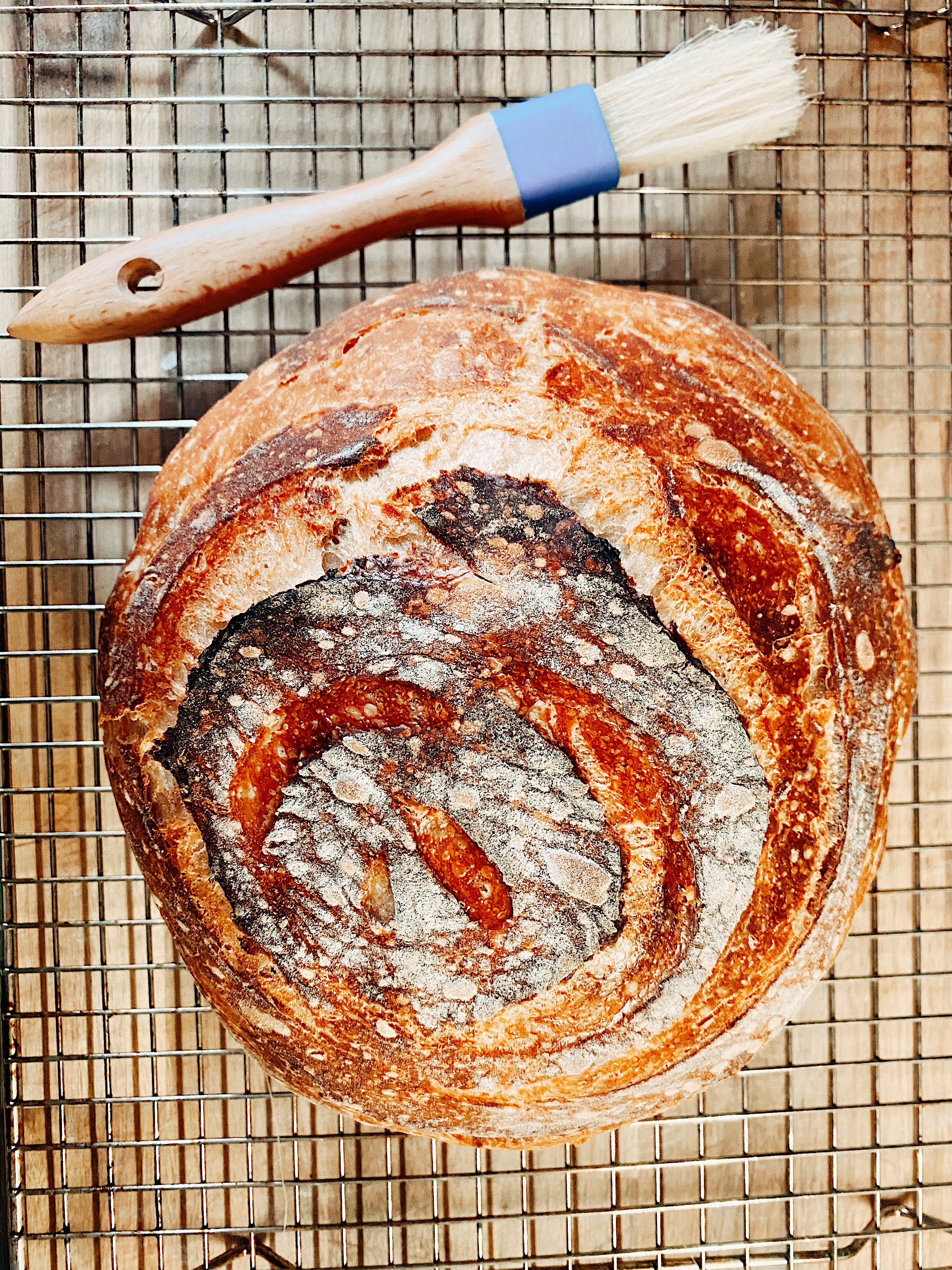 I had a starter at home back when I was baking professionally. I kept it alive but never used it, and eventually I let it die. Sometime last winter, again overtaken by boredom and a feeling of inadequacy, I tried to start a new one. It never took, and I decided that I was just fine baking with commercial yeast. Over the past year, I’ve baked a lot of bread, and felt the siren song of sourdough calling to me again. It was probably after I read another article about the brain fog supposedly caused my commercial yeast, or maybe I just wanted to eat more bread and have a reason to feel better about it.